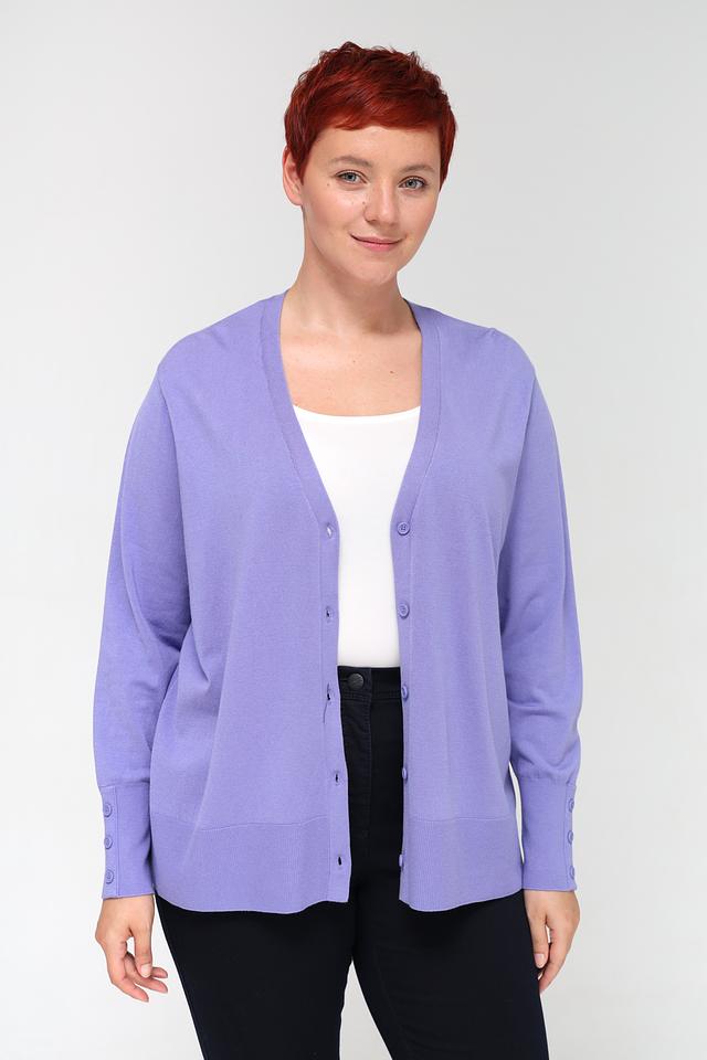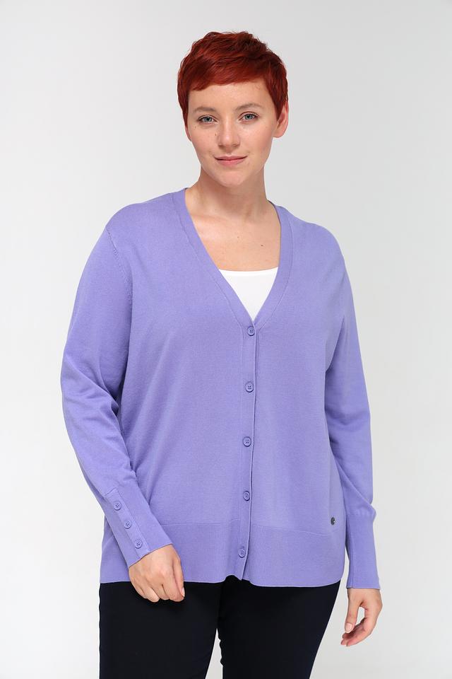 Жакет имеет длинные рукава и свободный крой, что обеспечивает комфорт в носке. Изготовлен из качественной вискозы (72%) с добавлением полиамида (28%), благодаря чему он приятен к телу, хорошо держит форму и не мнется.