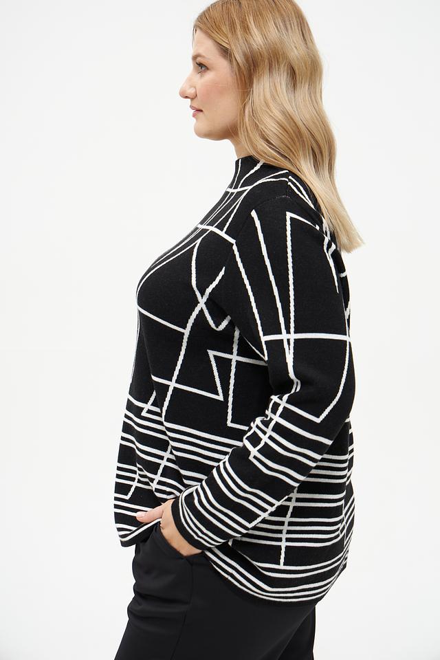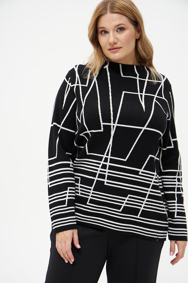 Женский пуловер Frapp чёрного цвета с оригинальным геометрическим рисунком станет стильным дополнением к вашему гардеробу. Модель выполнена из мягкого и приятного к телу сочетания хлопка и вискозы, обеспечивая комфорт в носке. Состав: хлопок 60%, вискоза 40%