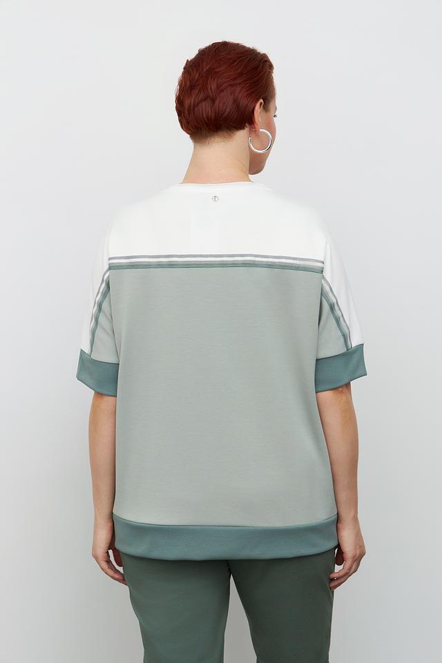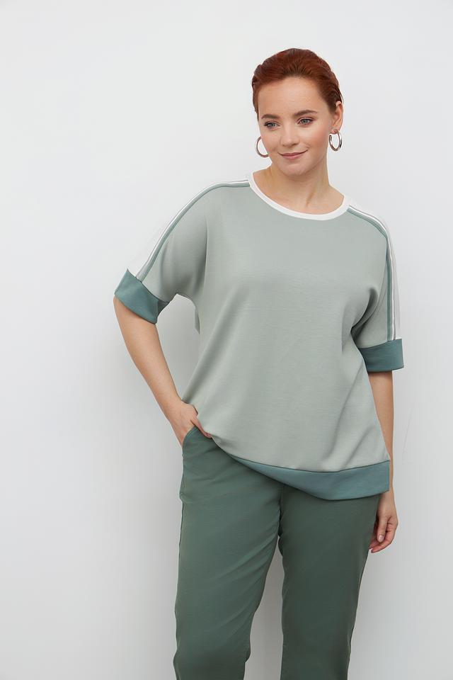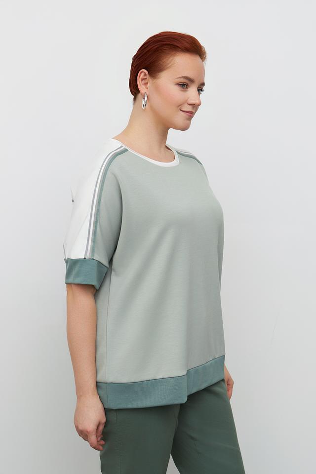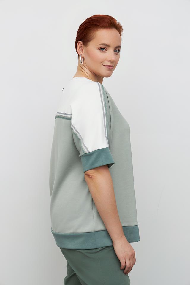Модель имеет свободный крой и короткие рукава, что делает ее удобной и универсальной. Пуловер идеально подойдет для создания повседневных образов, а также для занятий спортом или активного отдыха.