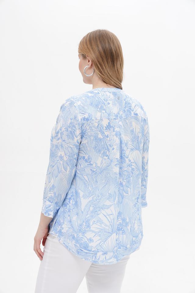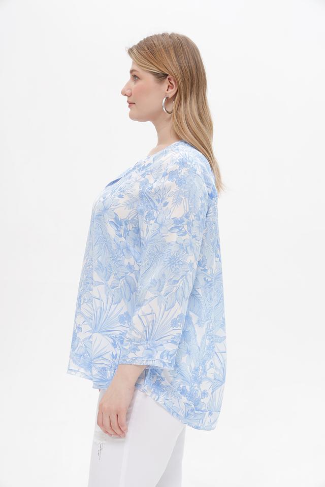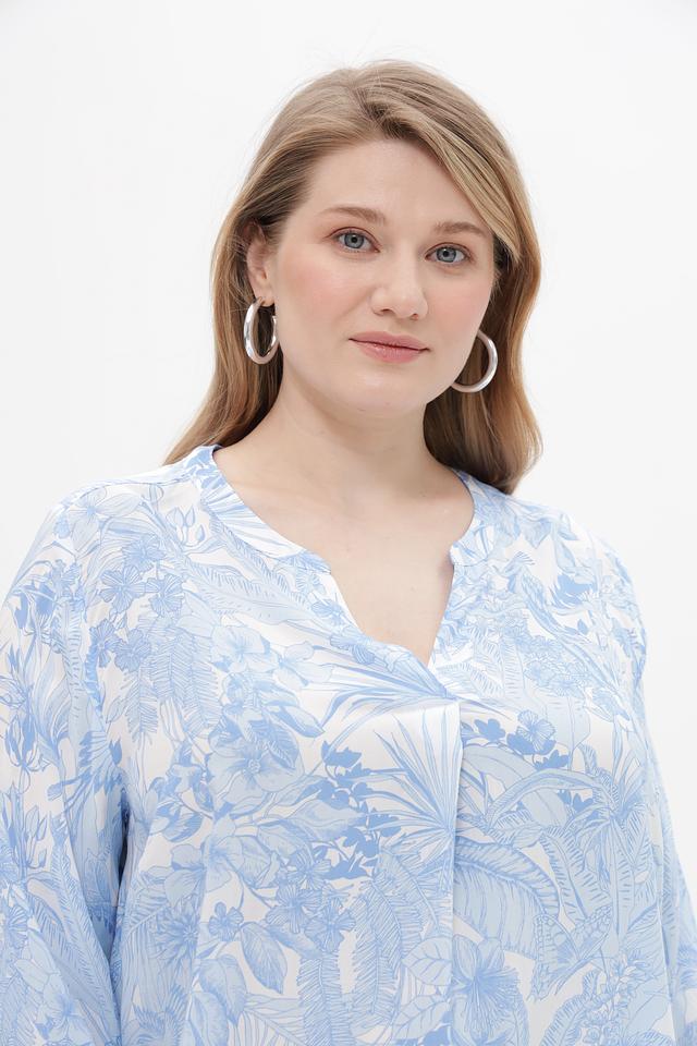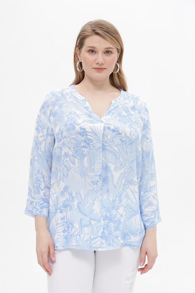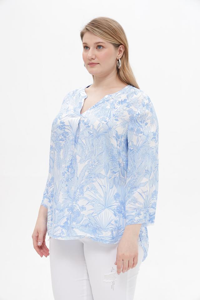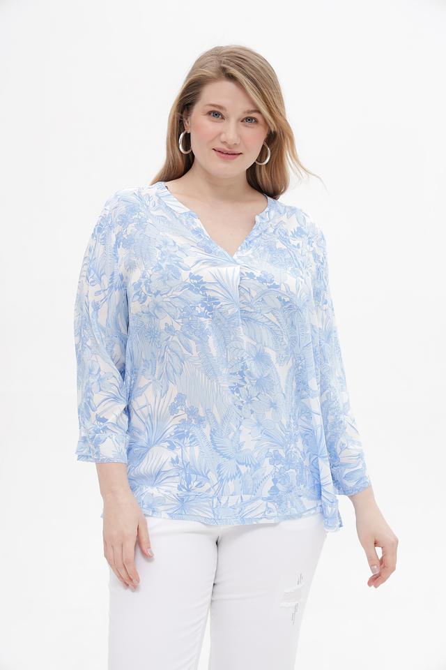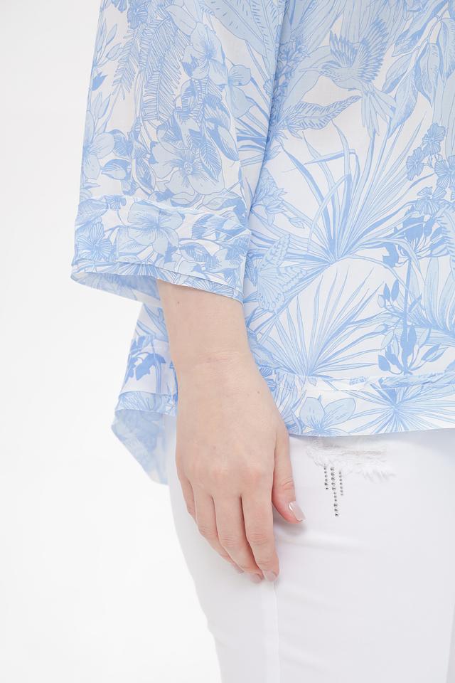 Особенностью этой блузки является ее яркий цветочный принт в голубых тонах, который придаст вашему образу свежесть и женственность. Она идеально подойдет для создания повседневных образов, а также для особых случаев. Блузка отлично сочетается с брюками, юбками и джинсами.