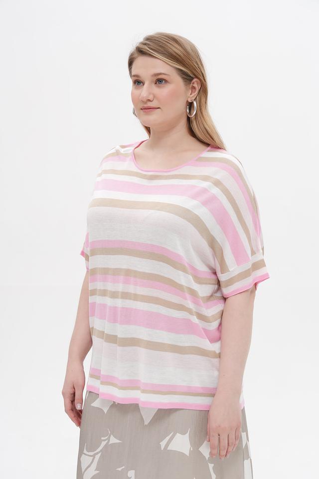 Женский пуловер Frapp нежно-розового и бежевого цвета с короткими рукавами. Изготовлен из мягкой вискозы и полиакрила, обеспечивающих комфорт и удобство в носке. Состав: вискоза 50%, полиакрил 50%