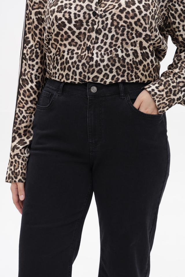 Джинсы имеют высокую посадку, которая визуально удлиняет ноги и подчеркивает талию. Пятикарманный крой – это классическое решение для джинсов, обеспечивающее функциональность и удобство. Изделие выполнено из качественного хлопка с добавлением эластана, что обеспечивает комфорт при носке и хорошую посадку по фигуре.