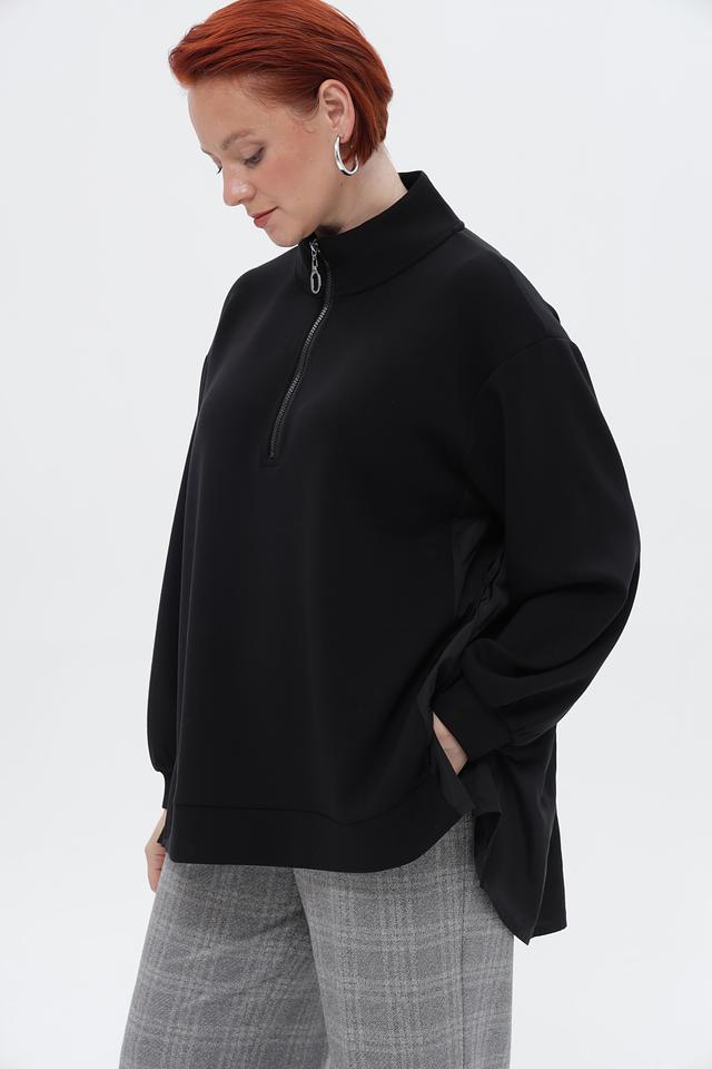 Особый акцент в дизайне блузки – рукава-фонарики и разрезы по бокам, которые придают ей оригинальный и современный вид. Данная модель станет отличным выбором для создания как повседневных, так и более элегантных образов.
