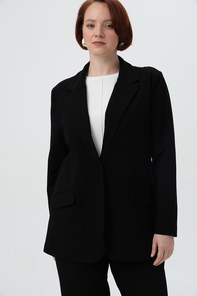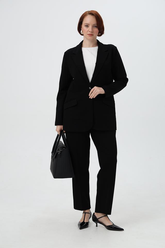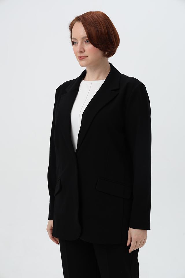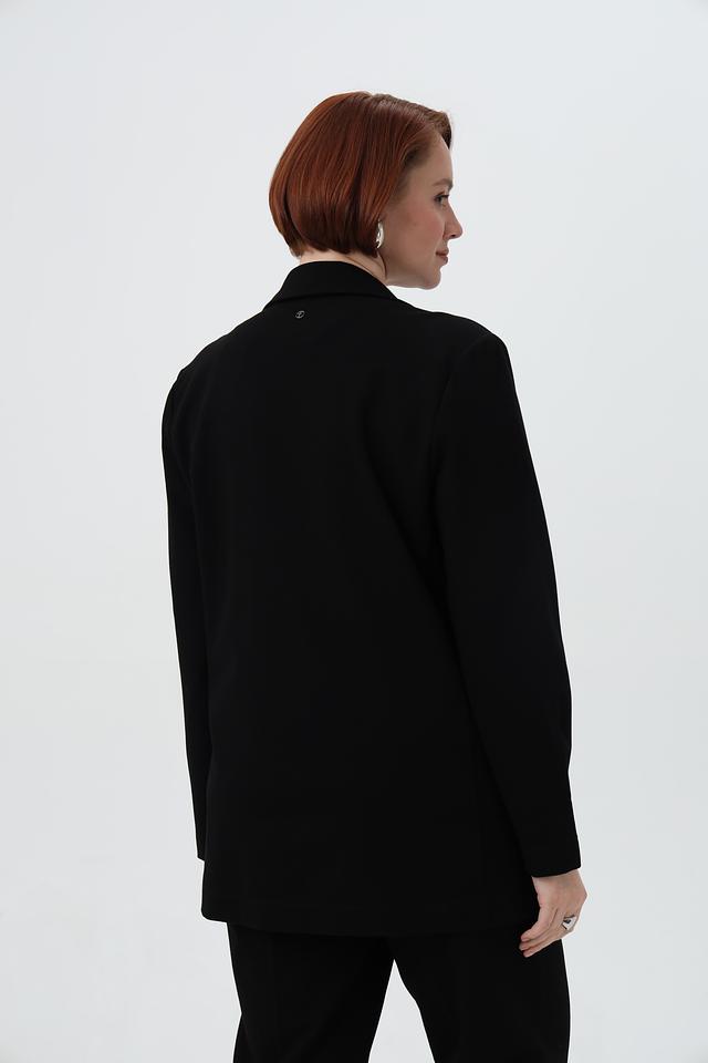 Классический чёрный жакет Frapp оверсайз кроя — идеальный выбор для создания стильных и современных образов. Модель имеет лаконичный дизайн без лишних деталей, что делает её универсальной и подходящей для различных случаев.