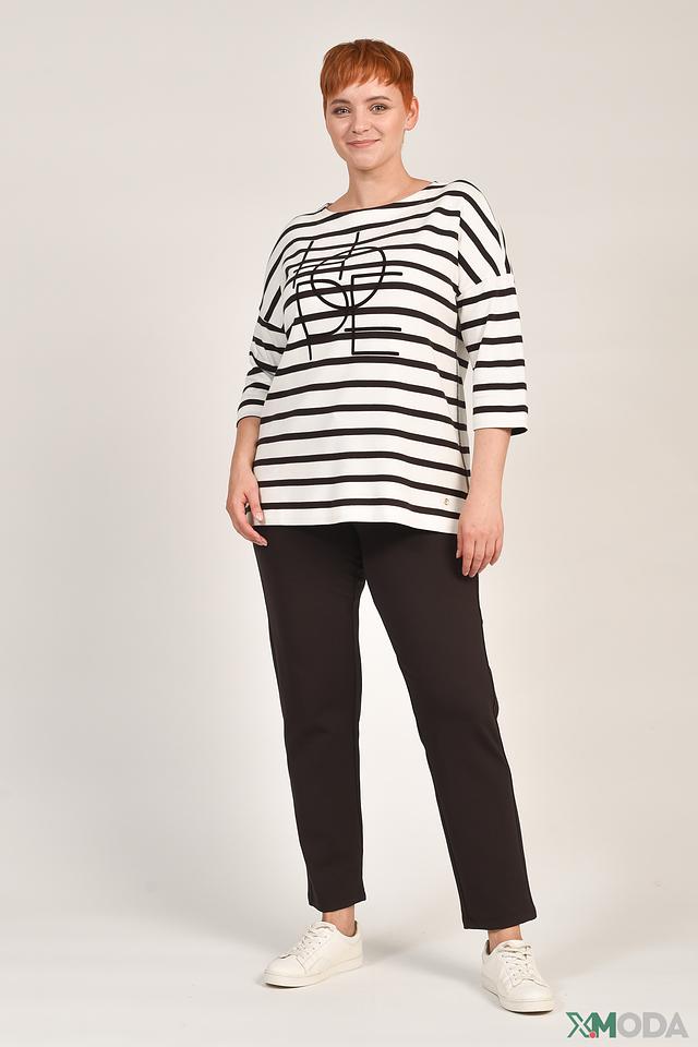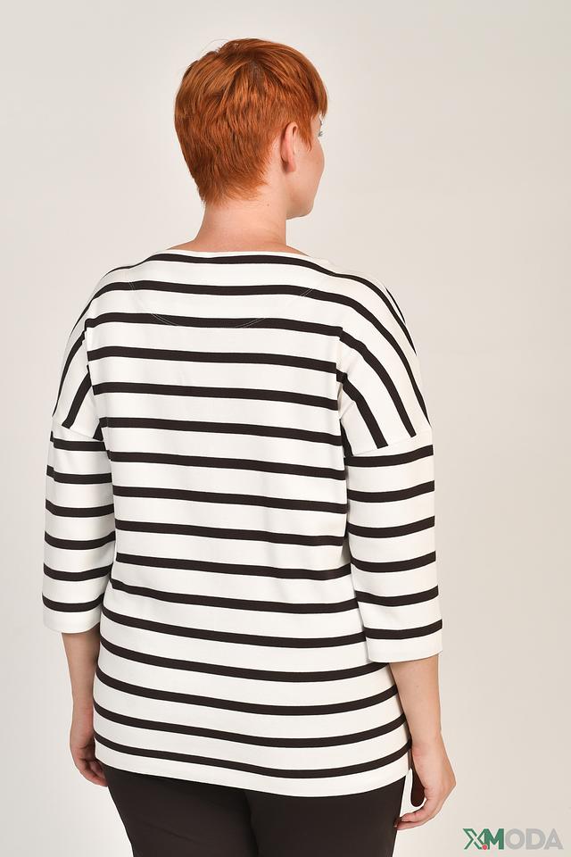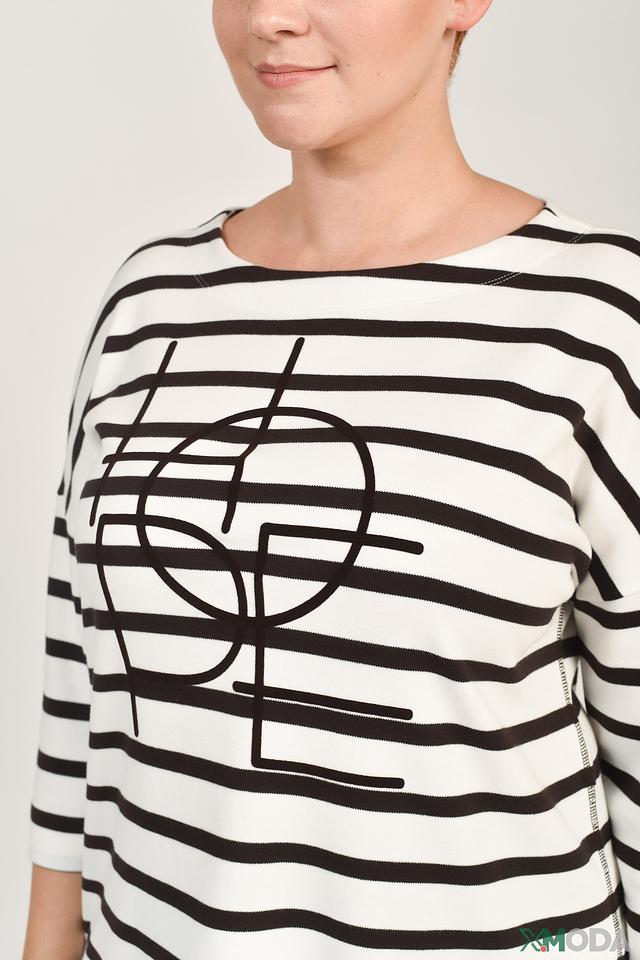 Классический крой с длинными рукавами и округлым вырезом горловины делает его универсальным элементом гардероба. Чёрно-белая полоска и оригинальный графический принт добавляют образу динамичности и индивидуальности.