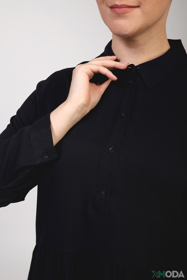 Чёрное платье от Frapp – это стильное и комфортное решение для повседневного гардероба. Модель выполнена из мягкой вискозы, имеет воротник-стойку и застёжку на пуговицах. Состав: вискоза 100%
