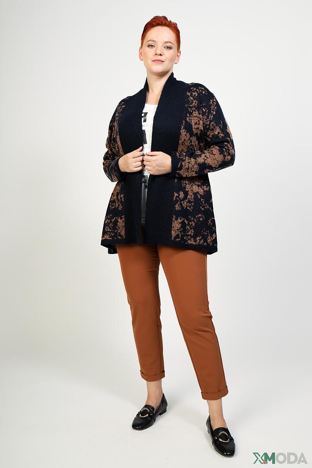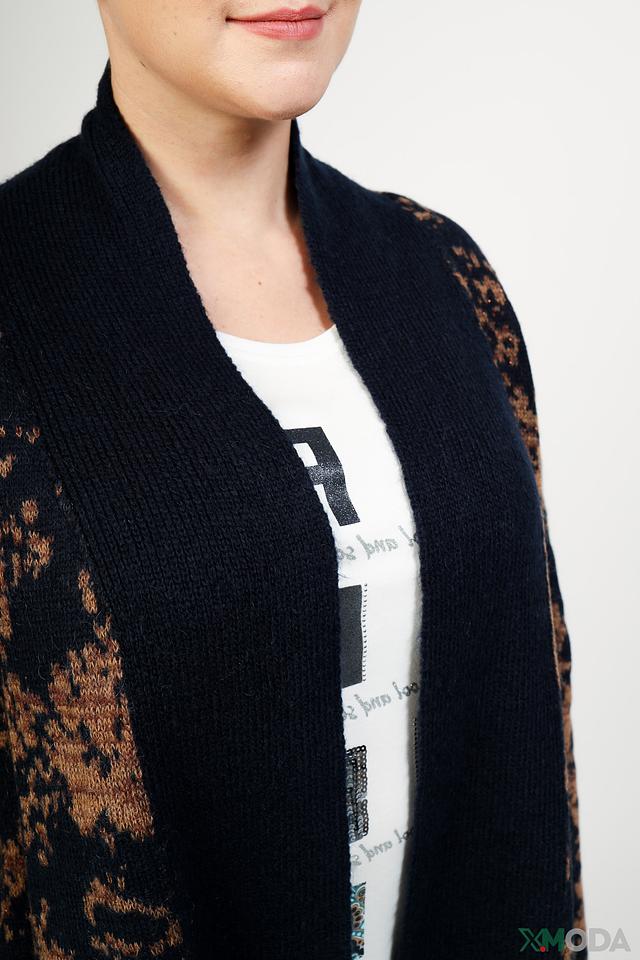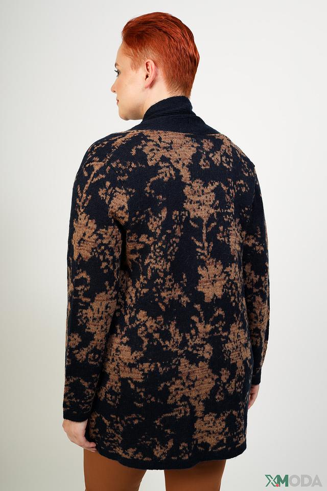 Этот жакет от Frapp – идеальный выбор для создания уютного и стильного образа. Жакет выполнен в тёмно-синем цвете и украшен выразительным узором в бежево-коричневых тонах, который придает ему особую изысканность.