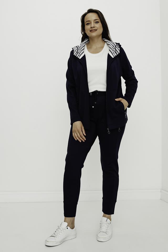 Женские брюки Frapp темно-синего цвета – это удобная и стильная модель для повседневной носки. Брюки имеют зауженный к низу силуэт и эластичный пояс с кулиской, что обеспечивает комфортную посадку. Изготовлены из мягкой вискозы с добавлением полиамида и эластана. Состав: вискоза 70%, полиамид 25%, эластан 5%