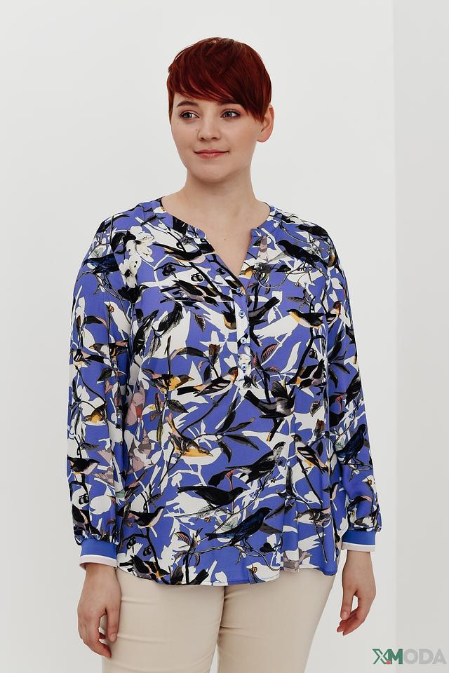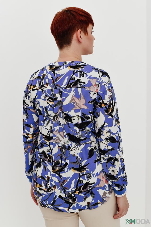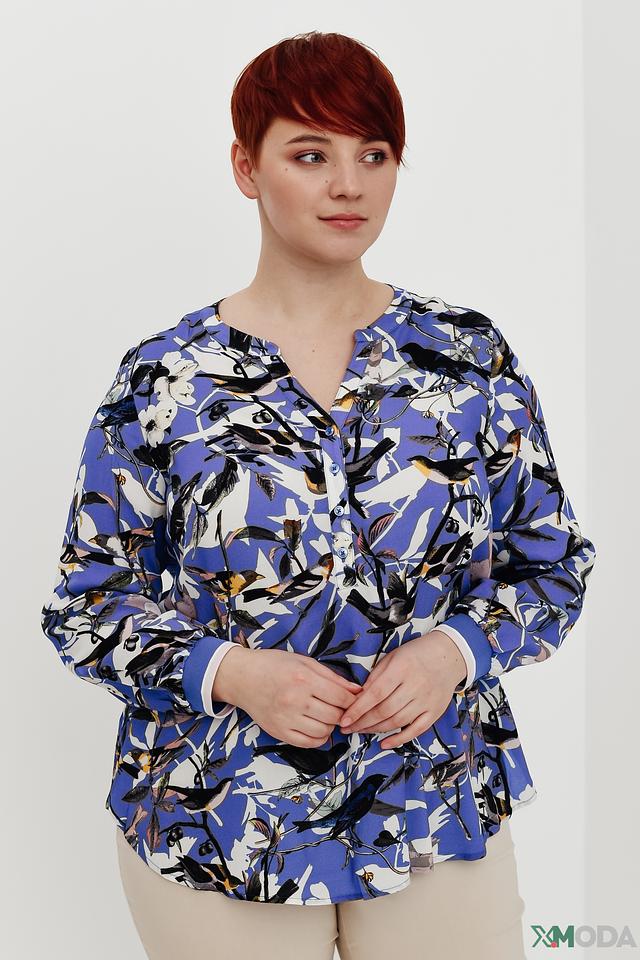 Синяя блуза Frapp с ярким цветочным принтом станет отличным дополнением к вашему гардеробу. Модель выполнена из мягкой вискозы, имеет V-образный вырез и рукава 3/4 с манжетами. Состав: вискоза 100%