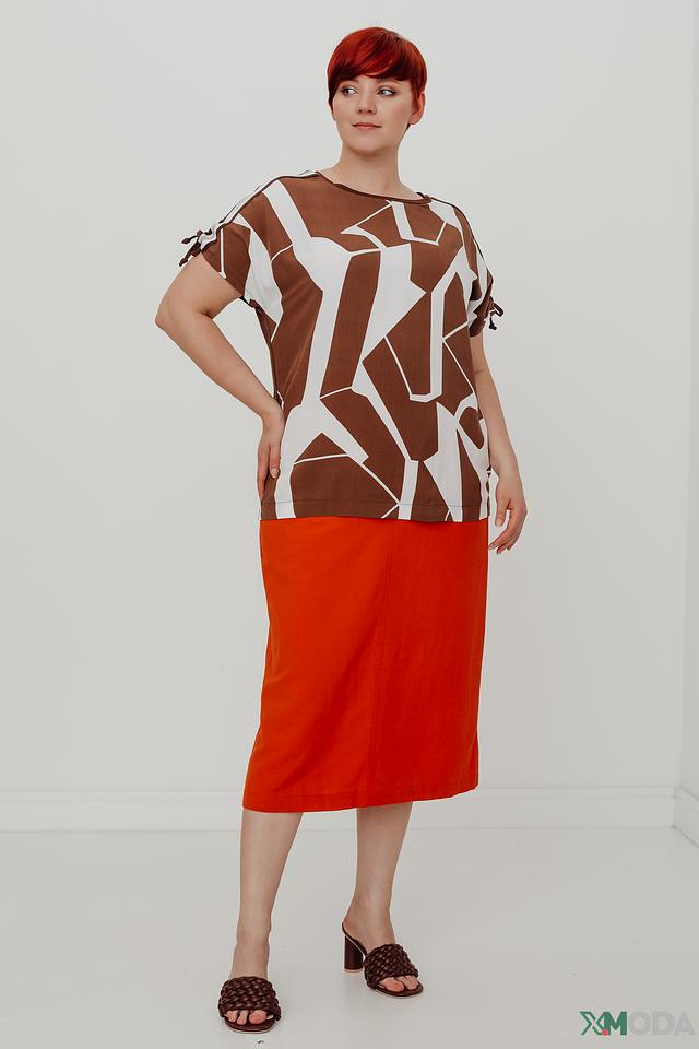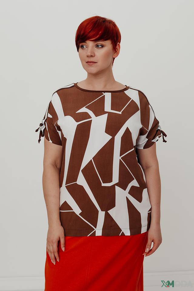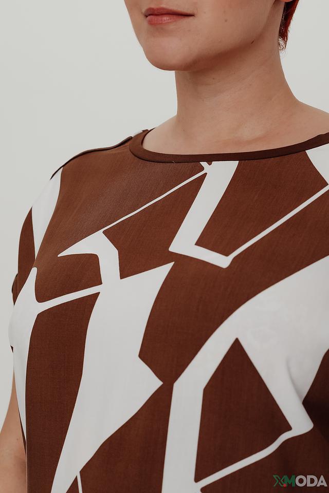 Эта блуза от Frapp – отличный выбор для создания модного и комфортного образа. Блуза выполнена в коричневом цвете и украшена ярким геометрическим принтом, состоящим из белых фигур.