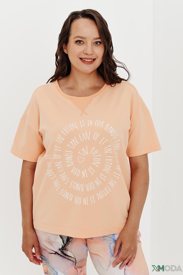 Женская футболка Frapp персикового цвета с оригинальным круглым принтом. Модель оверсайз из мягкого хлопка с добавлением эластана обеспечит комфорт и свободу движений. Состав: хлопок 95%, эластан 5%