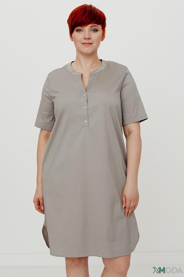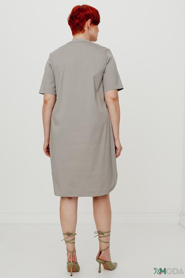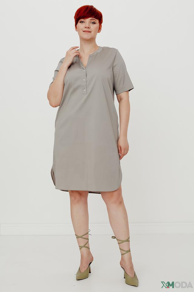 Это платье от бренда Frapp выполнено в сером цвете и станет отличным дополнением к вашему гардеробу. Модель имеет прямой силуэт, короткие рукава и V-образный вырез горловины, который декорирован небольшой планкой с пуговицами.