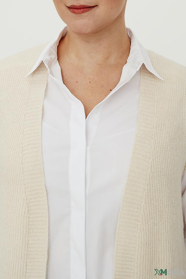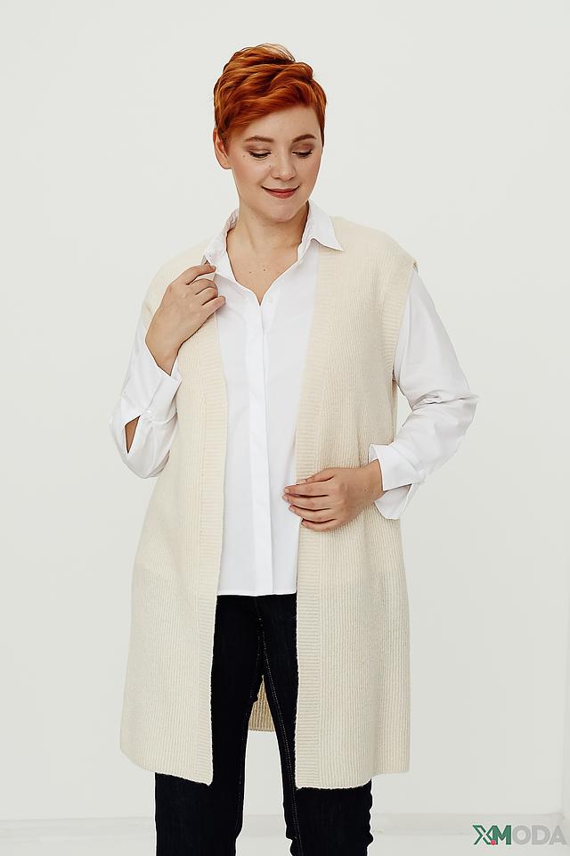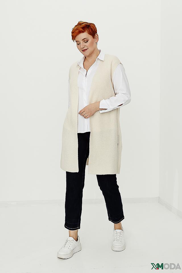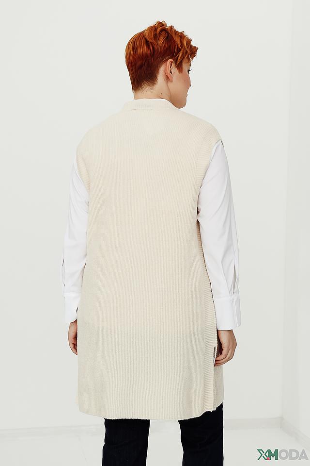 Вязаная текстура придает жилету особый шарм и делает его идеальным выбором для создания уютных и стильных образов. Открытый крой позволяет легко комбинировать его с другой одеждой, а отсутствие застежек обеспечивает свободу движений.
