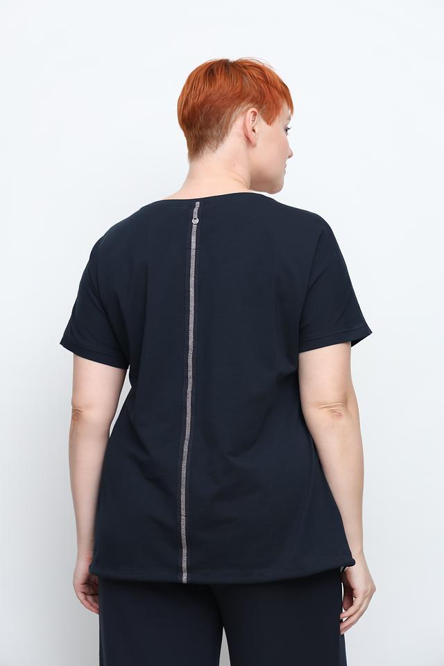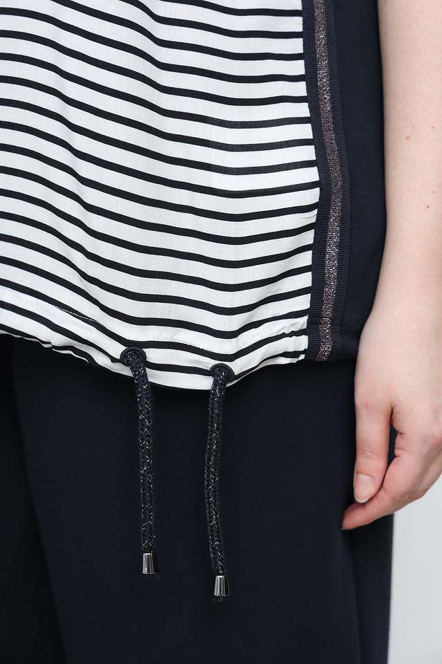 Модель имеет свободный крой, который обеспечивает свободу движений и комфорт в носке. Короткие рукава и округлый вырез горловины делают футболку подходящей для теплой погоды. Декоративные завязки по бокам позволяют регулировать силуэт и создавать различные образы.