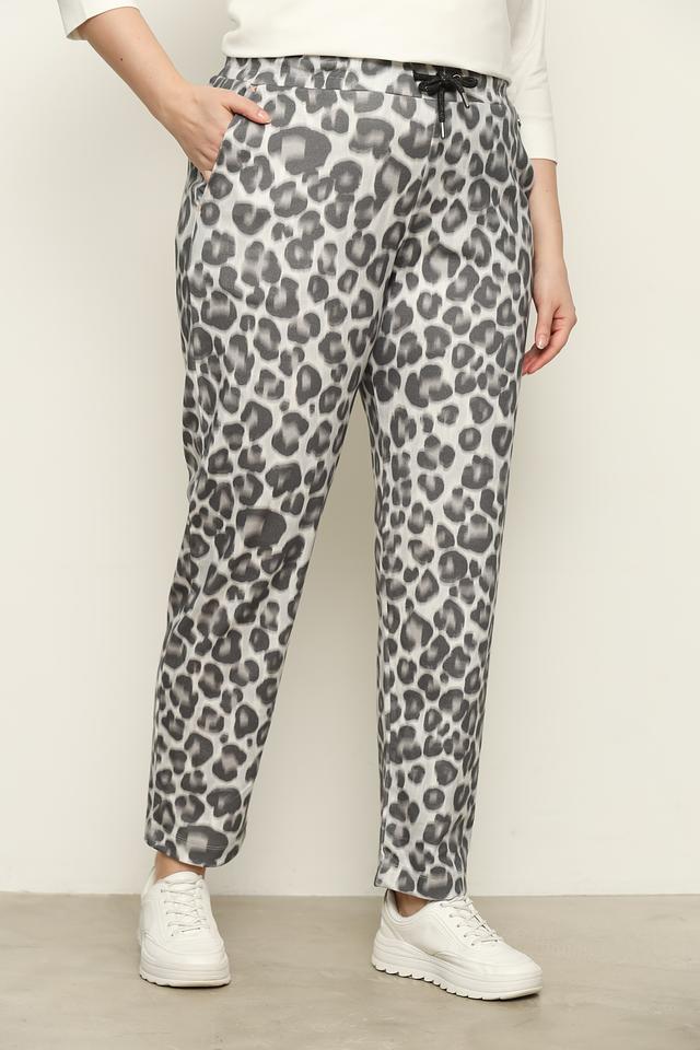 Женские брюки Frapp серого цвета с оригинальным леопардовым принтом станут ярким акцентом в вашем гардеробе. Модель выполнена из мягкого хлопка и дополнена удобным поясом на резинке и шнурком. Состав: хлопок 100%