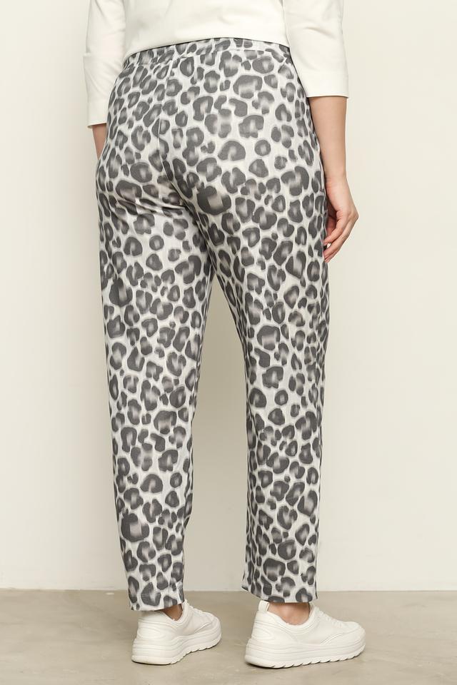 Эти стильные брюки от Frapp – отличный выбор для создания комфортного и модного образа. Брюки выполнены в сером цвете с эффектным леопардовым принтом, который добавит вашему образу динамичности и индивидуальности.