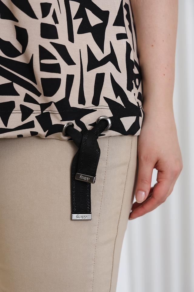 Эта стильная блуза от Frapp станет прекрасным дополнением к вашему гардеробу. Блуза выполнена в бежевом цвете и украшена ярким абстрактным принтом, который придает ей индивидуальность.