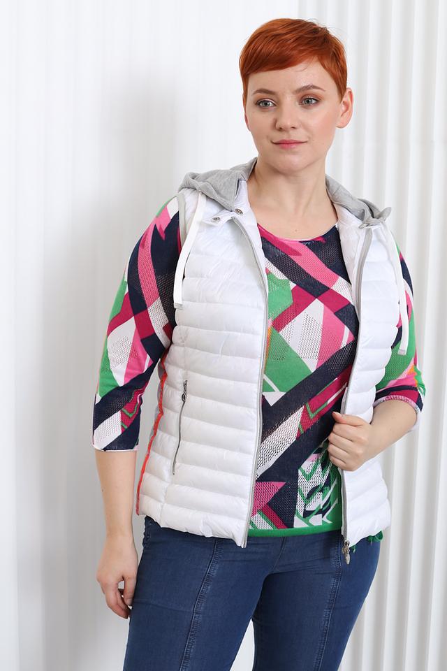Жилет изготовлен из 100% полиамида, что обеспечивает легкость, прочность и простоту в уходе. Он идеально сочетается с джинсами, брюками и платьями, позволяя создавать разнообразные стильные образы.