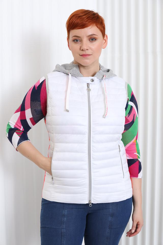Этот стеганый жилет от Frieda and Freddies станет отличным дополнением к вашему гардеробу. Жилет выполнен в белом цвете и имеет удобный капюшон, который защитит от ветра и небольшого дождя.