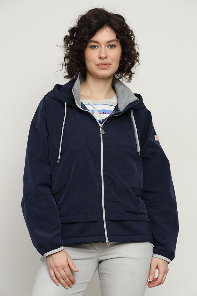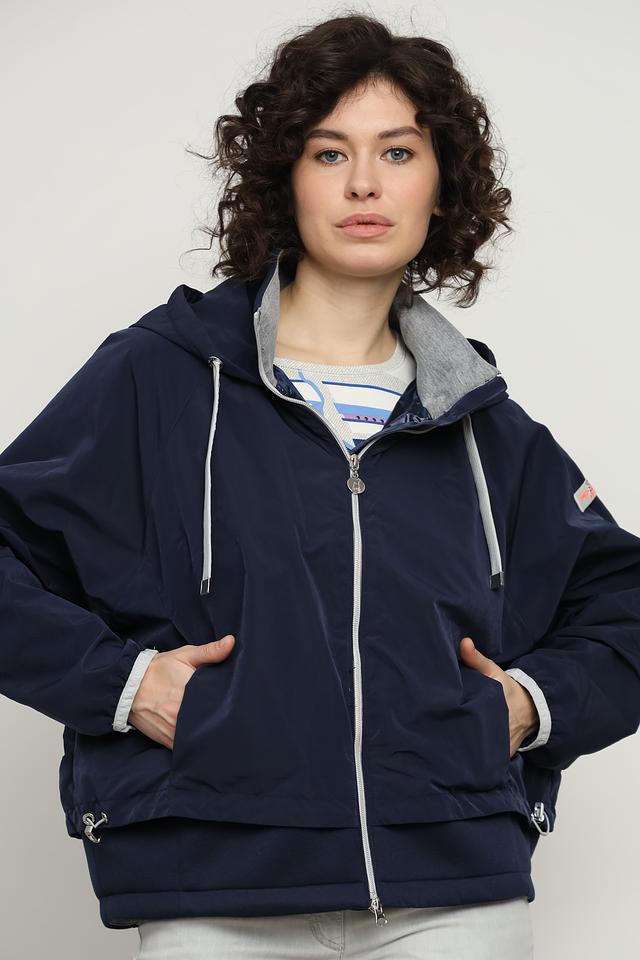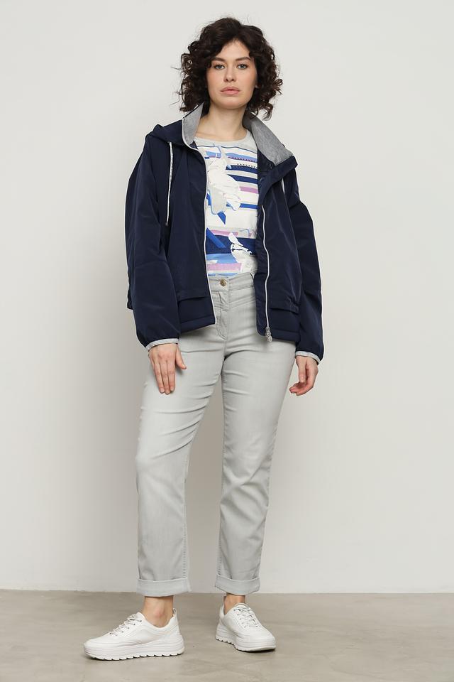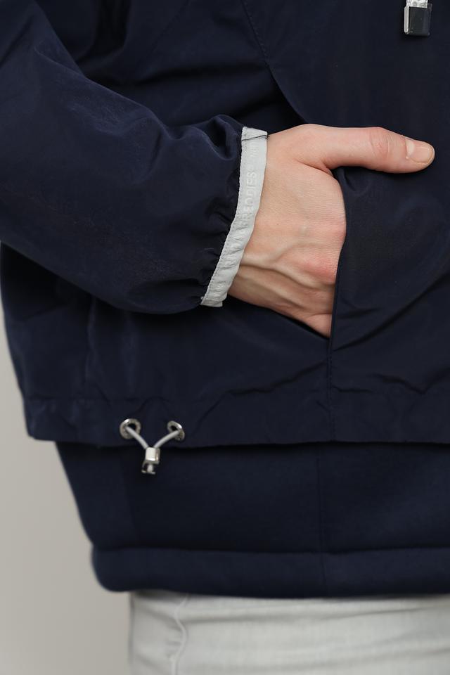 Куртка имеет прямой крой, который обеспечивает свободу движений. Застежка-молния позволяет легко надевать и снимать куртку, а манжеты и нижний край отделаны серой тесьмой, что добавляет модели стильный акцент.