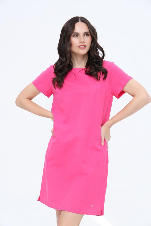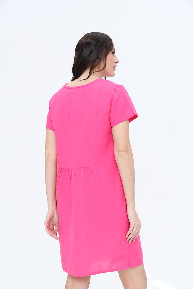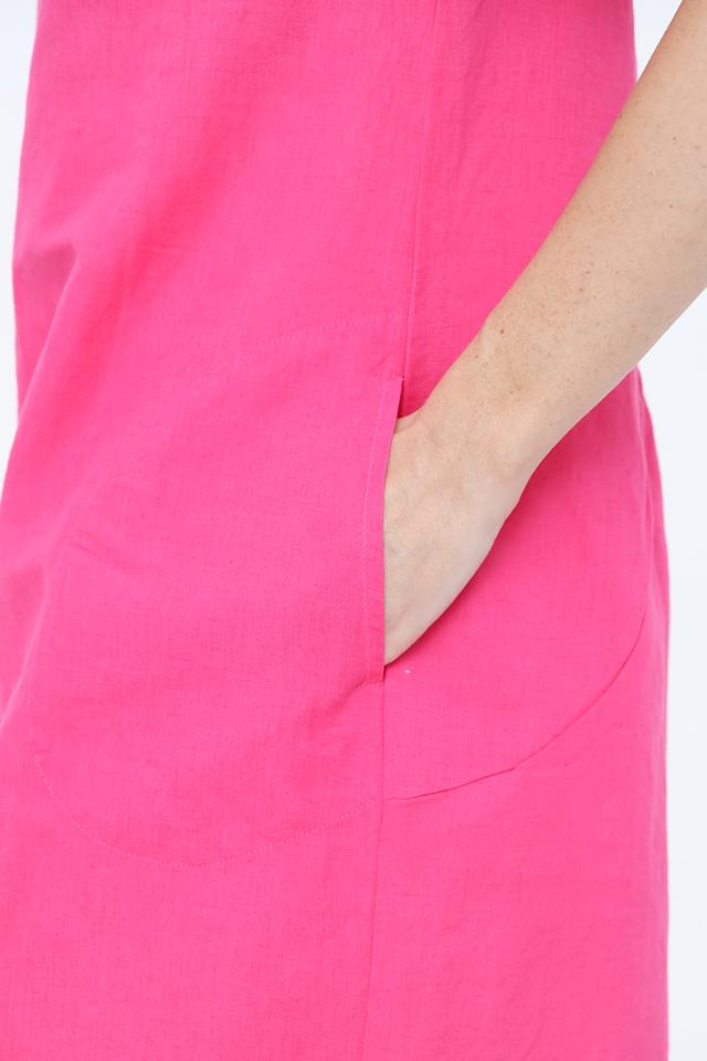 Яркое платье Frieda and Freddies фуксиевого цвета – отличный выбор для создания стильного и комфортного образа. Платье имеет прямой крой, короткие рукава и удобные боковые карманы. Состав: лен 65%, хлопок 35%