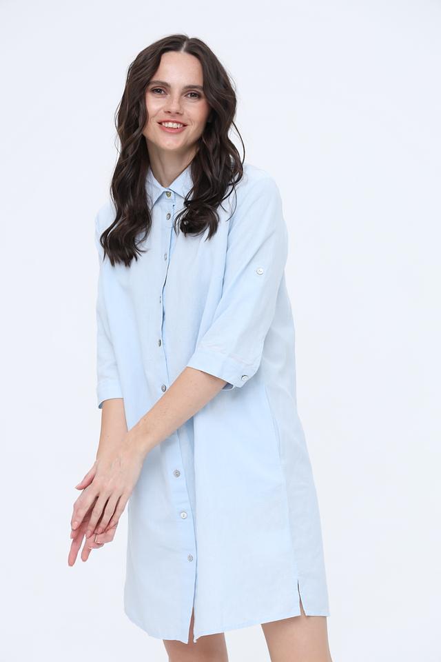 Это платье-рубашка от Frieda and Freddies станет отличным выбором для создания повседневного образа. Выполнено в нежном голубом цвете из натуральной ткани – 65% льна и 35% хлопка, что обеспечивает комфорт в жаркую погоду.