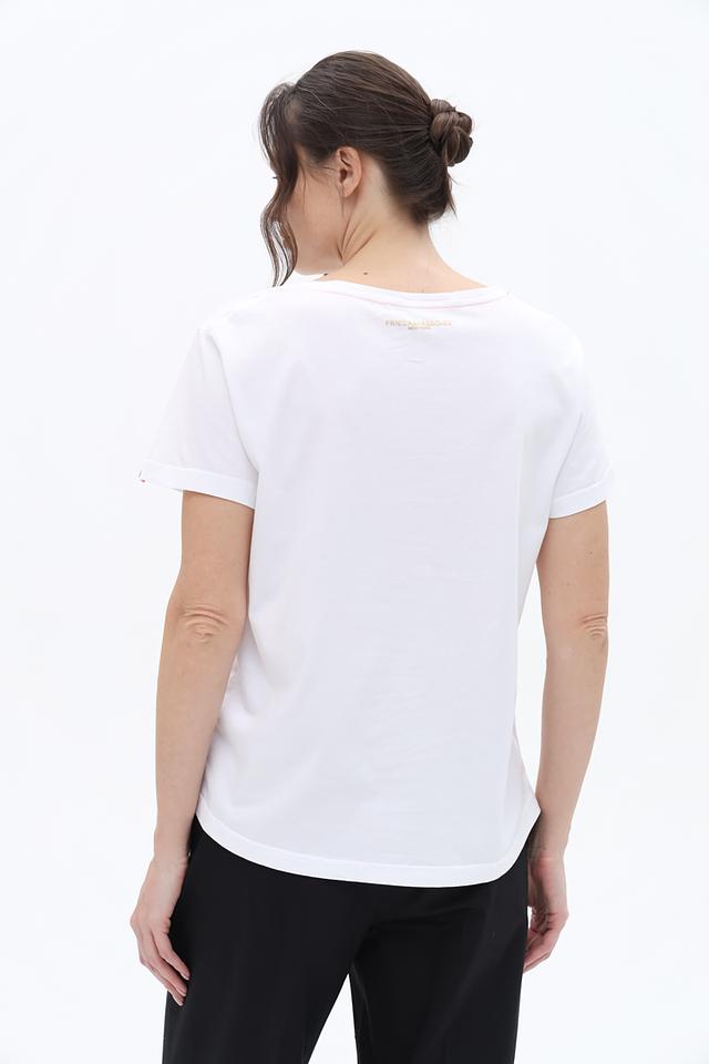 Эта белая футболка от Frieda and Freddies – отличный выбор для создания непринужденного и модного образа. Футболка выполнена из 100% хлопка, что гарантирует приятные ощущения на коже и комфорт в течение всего дня.