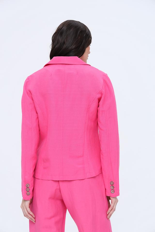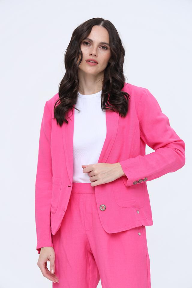 Женский жакет Frieda and Freddies фуксии цвета – стильный выбор для создания яркого образа. Модель выполнена из льна с вискозой, имеет классический крой с лацканами и застежкой на пуговицы. Состав: лен 60%, вискоза 40%