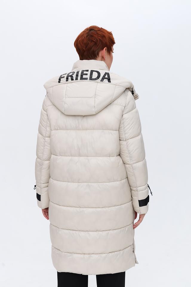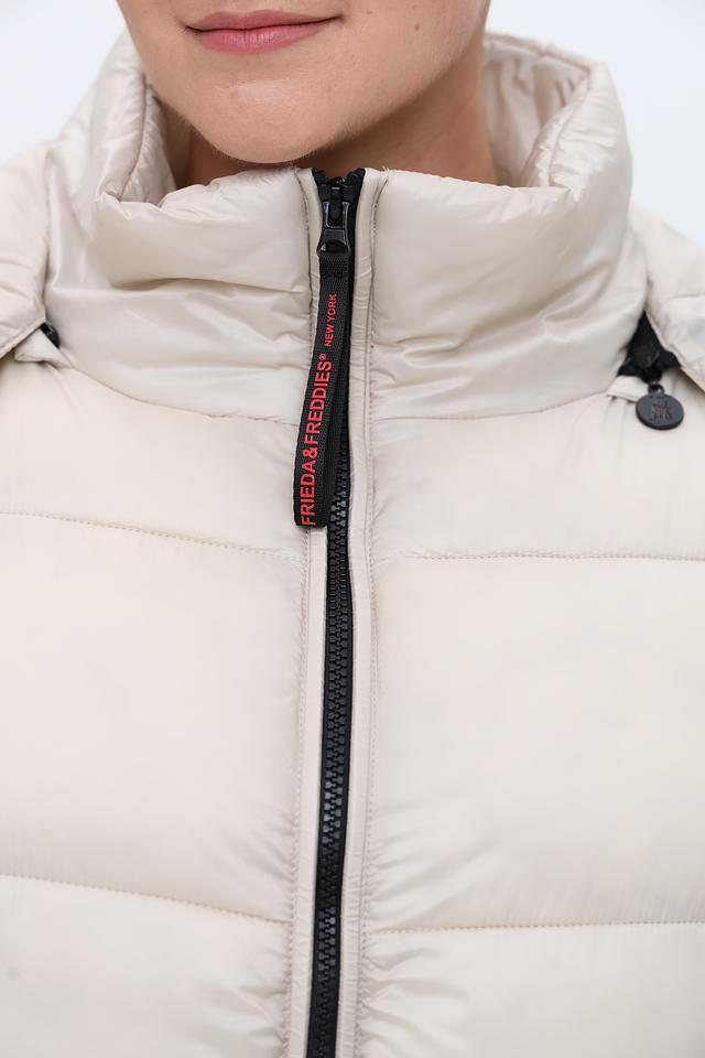 Стеганое пальто от Frieda and Freddies выполнено в нежном бежевом цвете. Это идеальный выбор для создания элегантных и практичных образов в холодное время года.