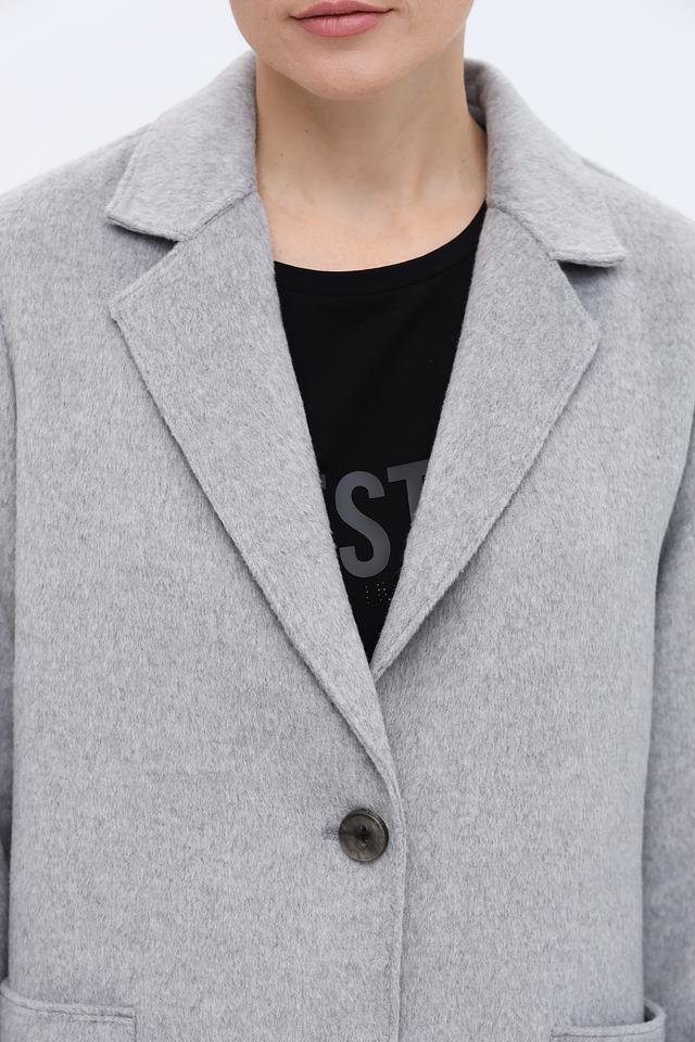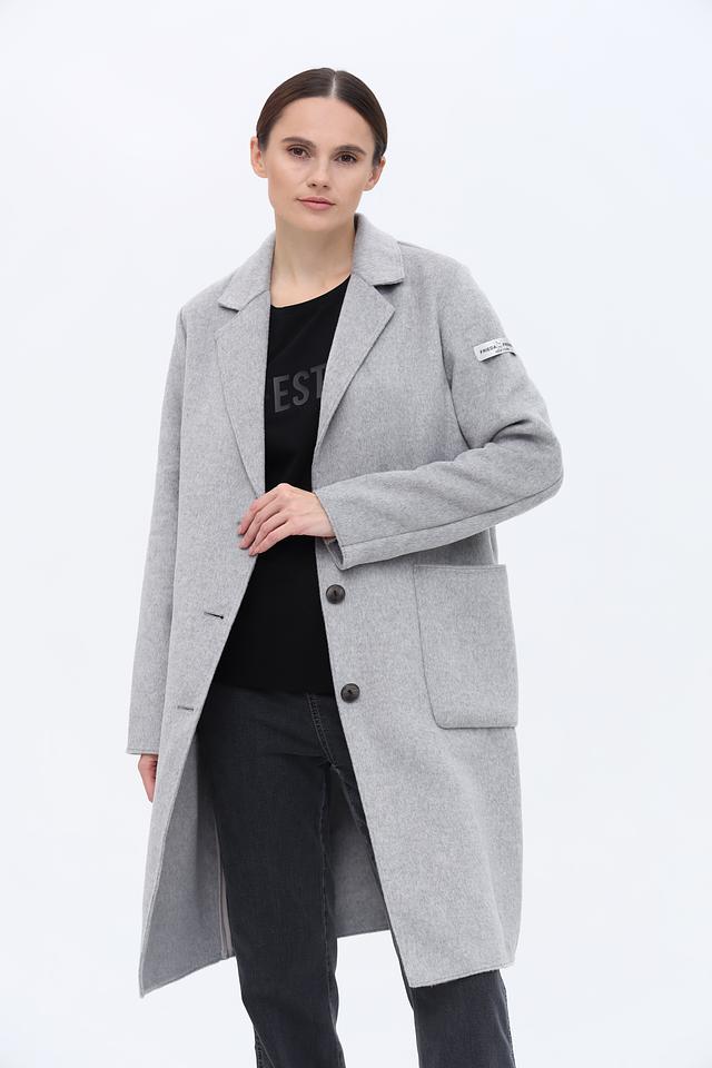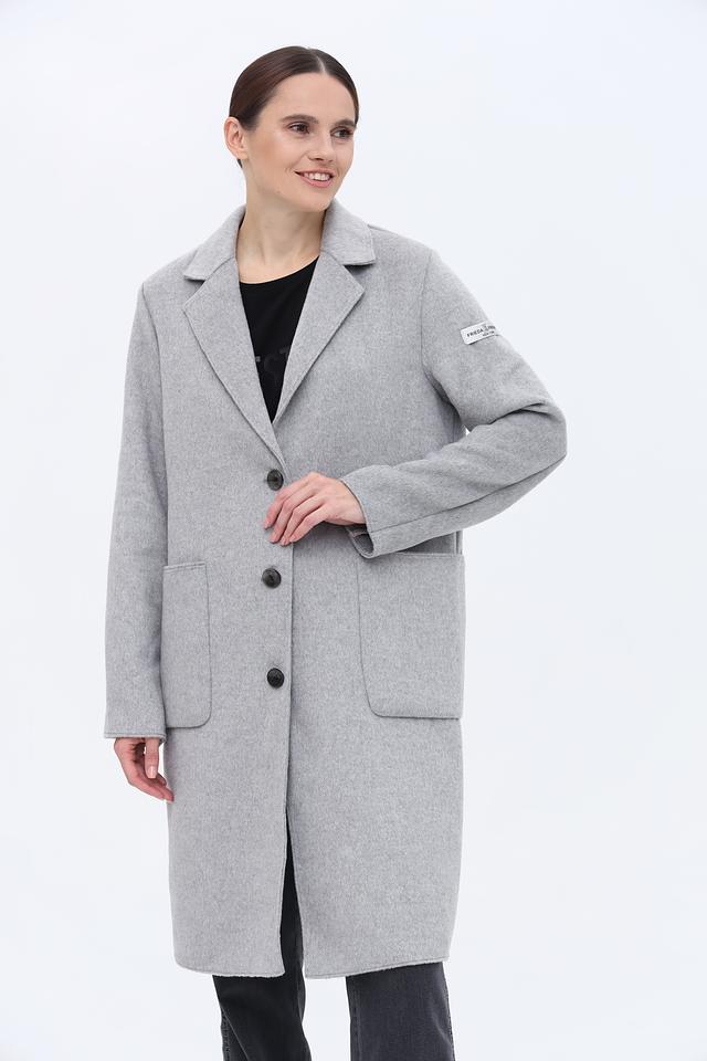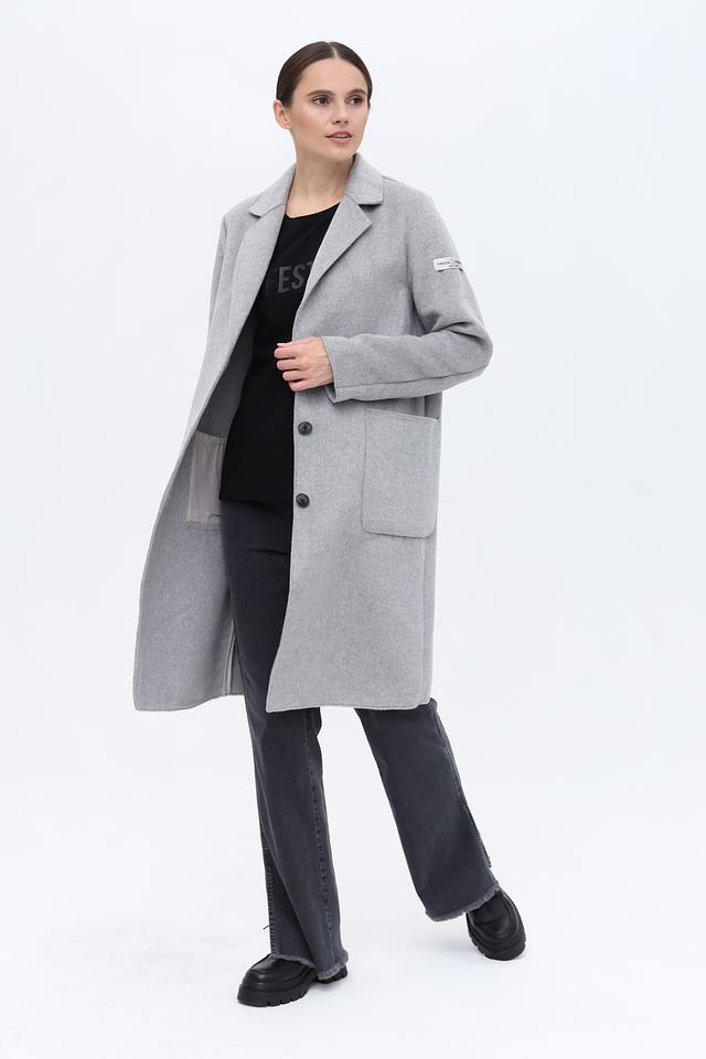 Пальто имеет прямой крой, который обеспечивает свободу движений и хорошо сочетается с различной одеждой. Застежка на пуговицы позволяет регулировать степень утепления. Накладные карманы добавляют функциональности и практичности.