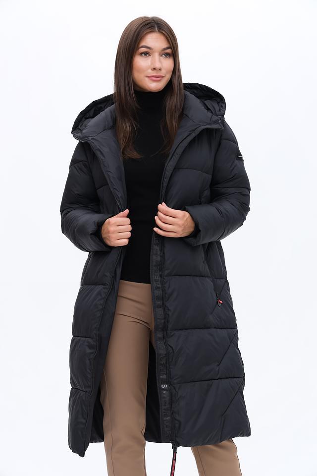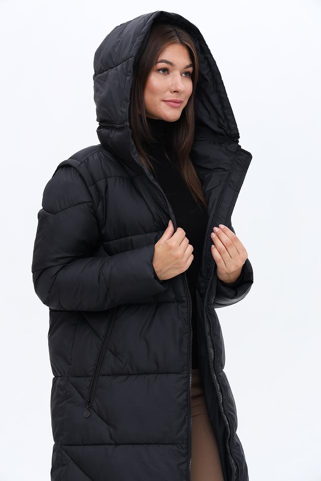 Пальто имеет стеганую фактуру, которая придает ему современный вид и обеспечивает дополнительную теплоизоляцию. Капюшон защитит от ветра и снега, а молния позволит быстро и удобно застегнуть пальто.