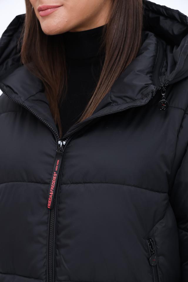 Чёрное стеганое пальто Frieda and Freddies – это стильное и практичное решение для холодной погоды. Модель выполнена из 100% полиэстера, имеет капюшон и застегивается на молнию. Состав: полиэстер 100%
