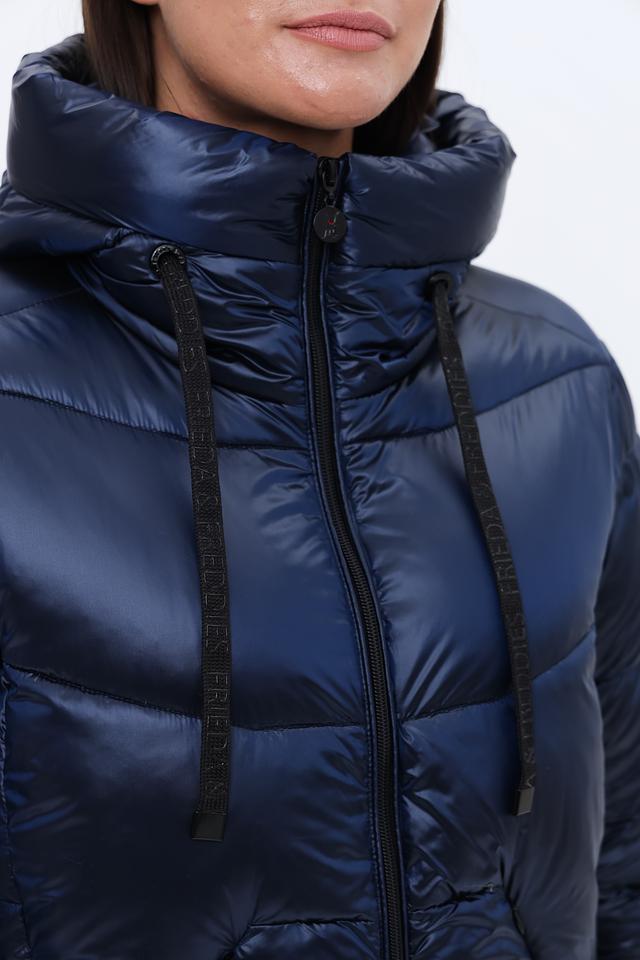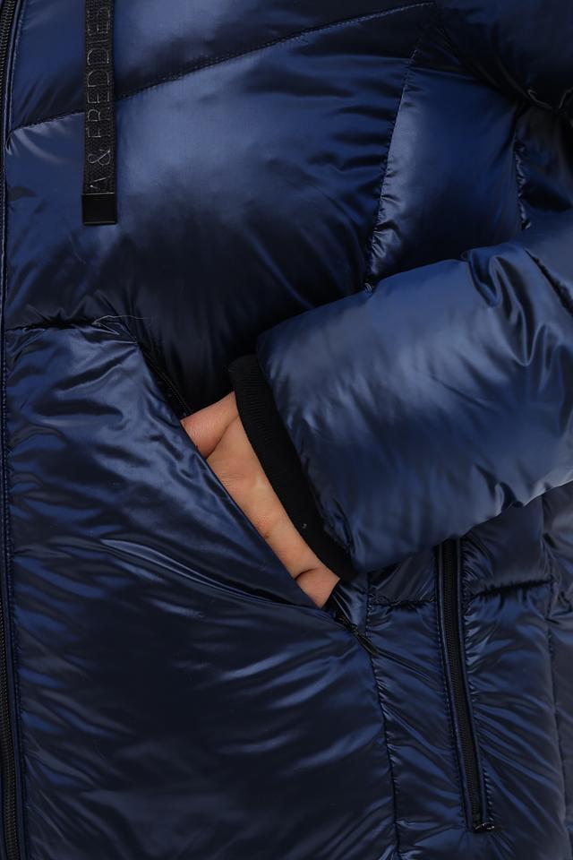 Синее стеганое пальто Frieda and Freddies – это стильное и теплое решение для прохладной погоды. Модель имеет удобный капюшон и застегивается на молнию, а также оснащено боковыми карманами для мелочей. Состав: полиамид 100%
