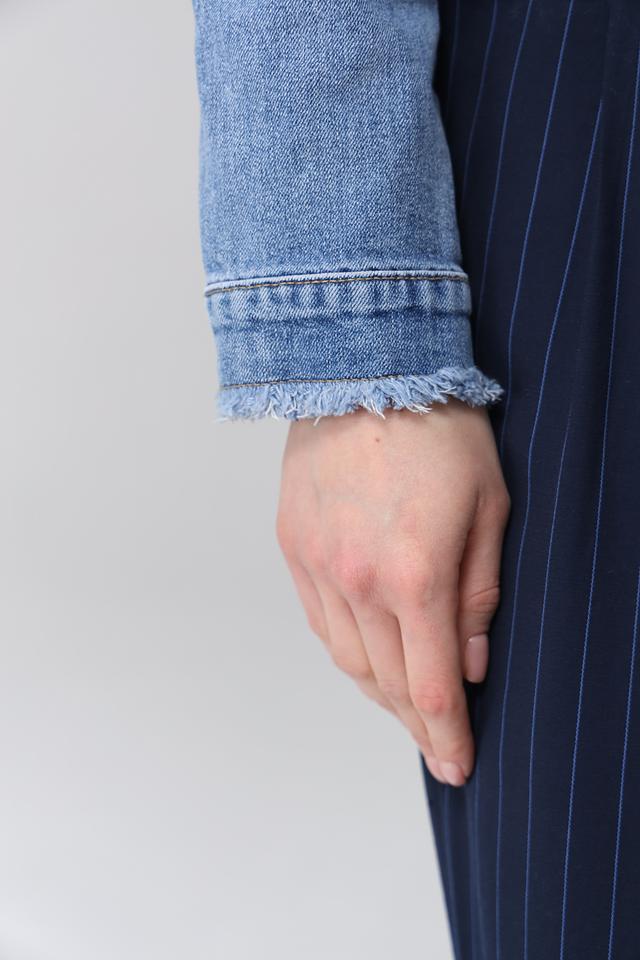 Обратите внимание на необработанные края и эффект потертости, которые придают куртке винтажный вид. Застежка на металлические пуговицы. Состав: 98% хлопок, 2% эластан.