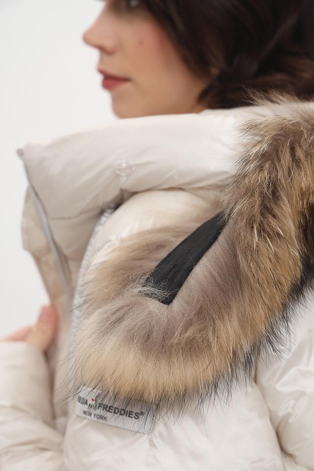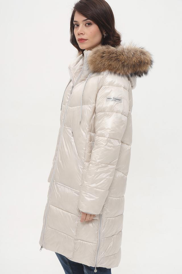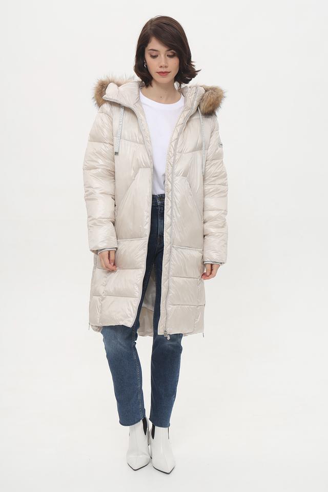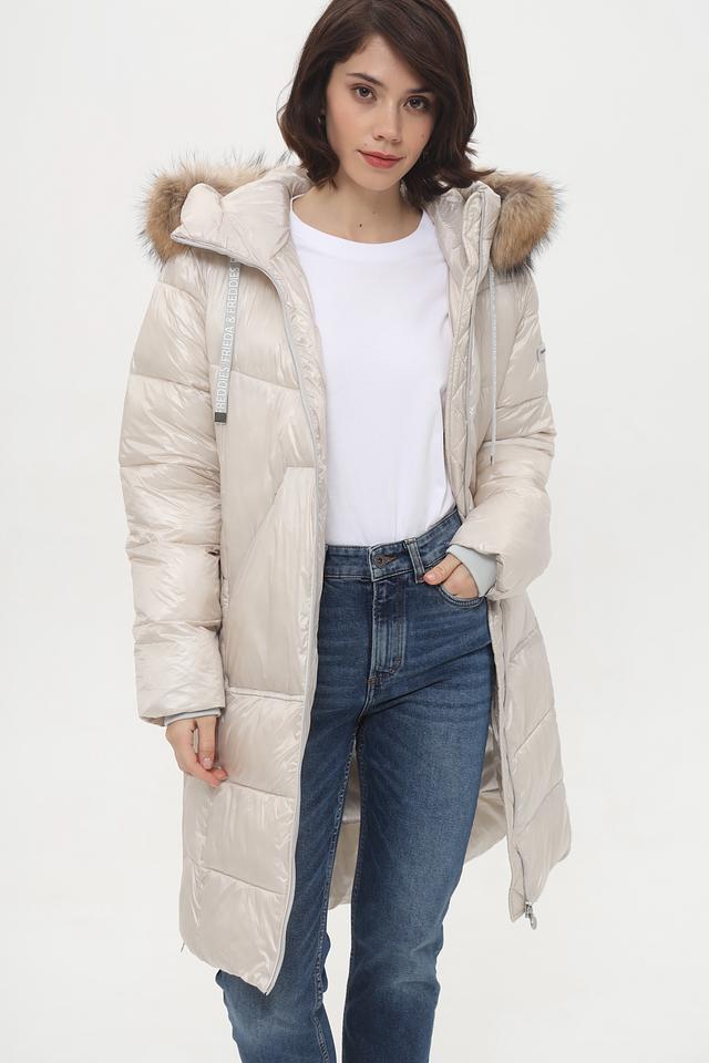 Модель имеет прямой крой, длину до середины и удобный капюшон, отделанный искусственным мехом.