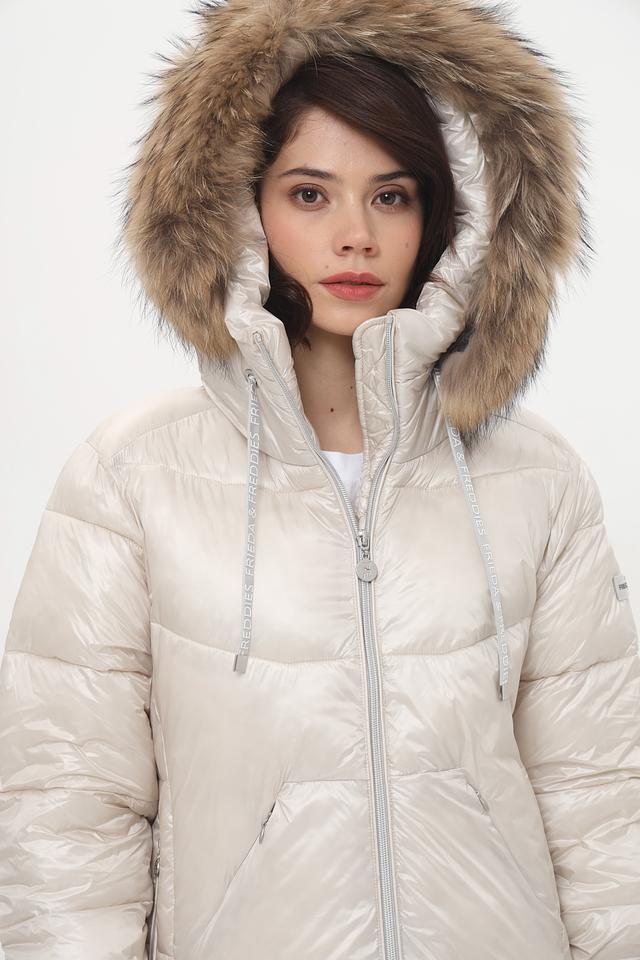 Стеганое пальто от Frieda and Freddies выполнено в нежном бежевом цвете и станет отличным дополнением к вашему гардеробу.