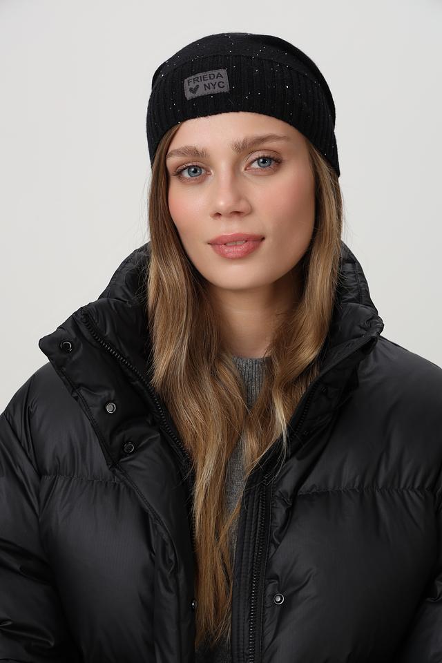 Эта стильная шапка от Frieda and Freddies станет отличным дополнением к вашему зимнему гардеробу. Модель выполнена в классическом черном цвете и украшена мерцающими пайетками, придающими ей особый шарм.