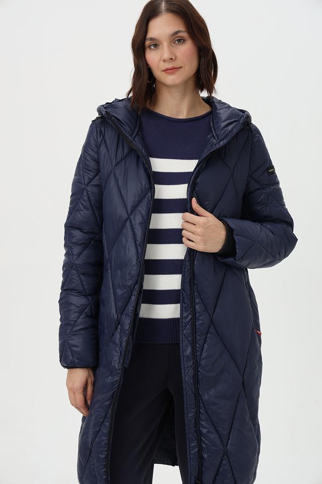 Стильное стеганое пальто Frieda and Freddies синего цвета, выполненное из 100% полиамида. Удлиненный крой и капюшон обеспечивают защиту от непогоды, а оригинальный принт на подкладке добавляет индивидуальности. Состав: полиамид 100%