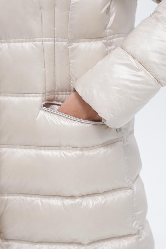 Модель имеет стеганую фактуру, капюшон и застегивается на молнию. Пальто дополнено двумя боковыми карманами на молнии, в которых удобно хранить необходимые мелочи. Удобный крой обеспечивает свободу движений и комфорт в носке.
