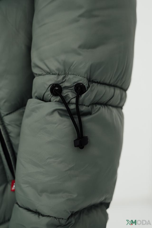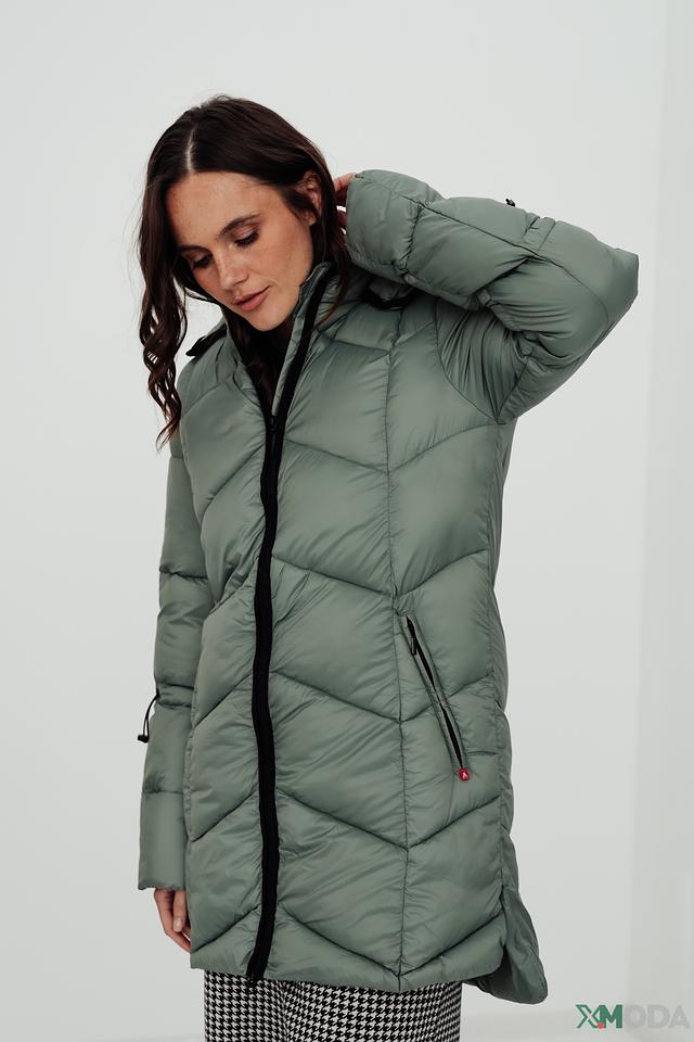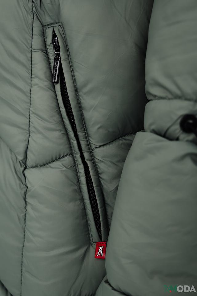 Пальто застегивается на молнию, имеет два боковых кармана и длинные рукава с манжетами. Оливковый цвет делает это пальто универсальным дополнением к вашему гардеробу, легко сочетаемым с различными стилями одежды.