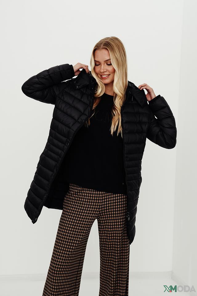 Пальто имеет стеганую фактуру, которая придает ему современный вид. Капюшон обеспечивает дополнительную защиту от непогоды, а застежка на кнопки позволяет быстро и удобно застегнуть пальто.