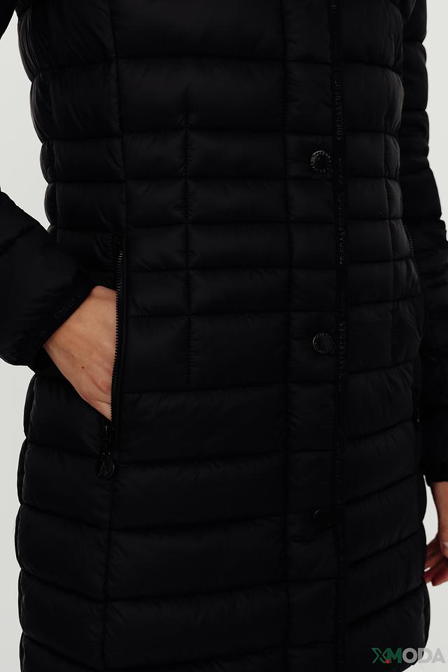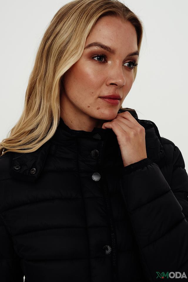 Чёрное стеганое пальто Frieda and Freddies – это стильное и практичное решение для прохладной погоды. Модель с капюшоном и застежкой на кнопки обеспечит комфорт и защиту от ветра, а современный дизайн подчеркнет ваш индивидуальный стиль. Состав: полиамид 100%