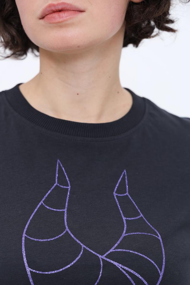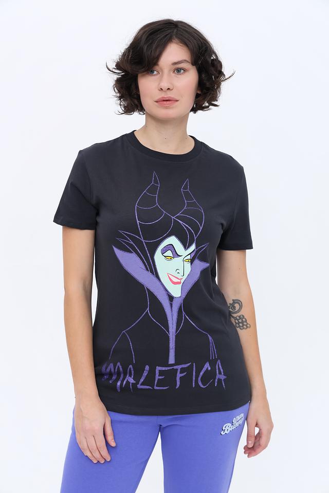 Эта футболка от бренда Alcott станет отличным дополнением к вашему гардеробу. Она выполнена в классическом чёрном цвете и украшена эффектным принтом с изображением Малефики.