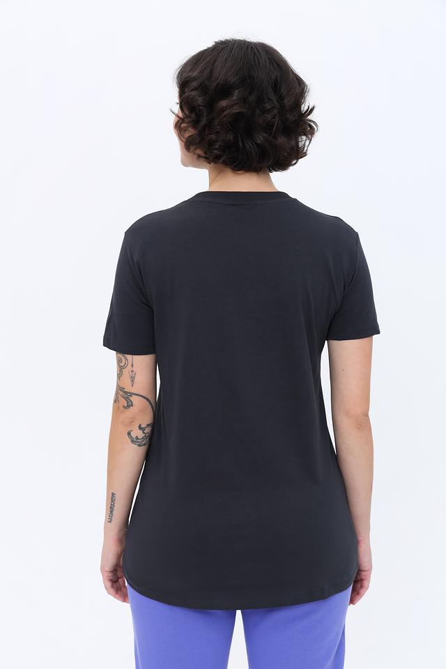 Футболка имеет прямой крой, который обеспечивает свободу движений. Круглый вырез горловины и короткие рукава делают её идеальной для повседневной носки в тёплую погоду.
