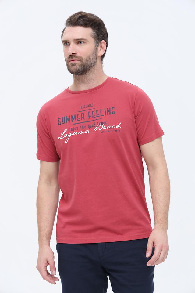 Мужская футболка Basefield терракотового цвета с ярким принтом "Summer Feeling". Изготовлена из 100% хлопка, обеспечивающего комфорт и воздухопроницаемость. Отличный выбор для создания стильного и непринужденного образа. Состав: хлопок 100%