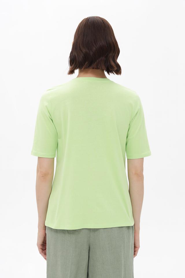 Футболка имеет классический прямой крой, который подходит для любой фигуры. Короткий рукав делает ее идеальным выбором для теплой погоды. Лаймовый цвет добавит яркости и свежести вашему образу.