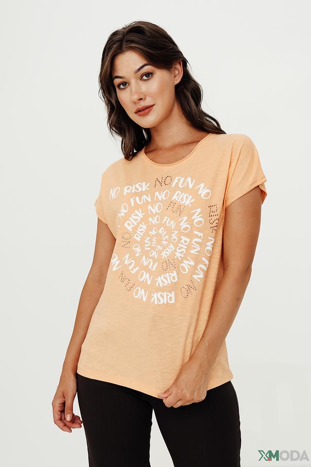 Персиковая футболка Bianca с оригинальным принтом "No Risk No Fun" станет ярким акцентом в вашем образе. Изготовлена из мягкого хлопка, обеспечивающего комфорт в течение всего дня. Состав: хлопок 100%