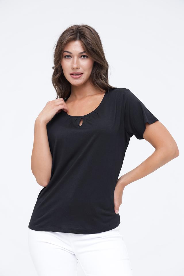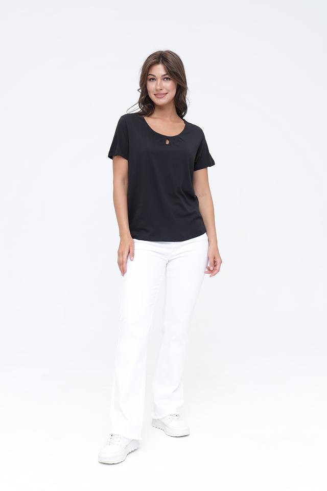 Благодаря своему лаконичному дизайну и универсальному цвету, эта футболка идеально подходит для создания как повседневных, так и более элегантных образов. Она станет отличным выбором для женщин, ценящих комфорт, стиль и качество.