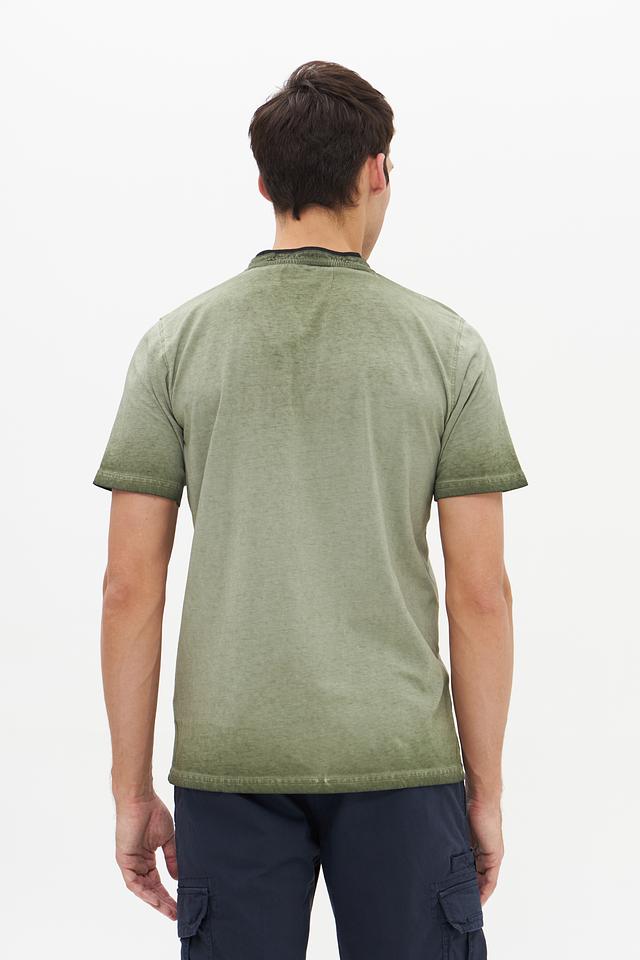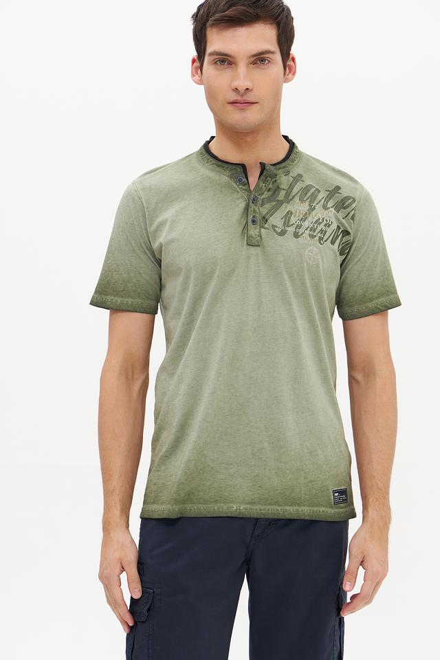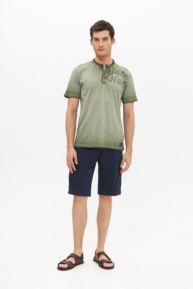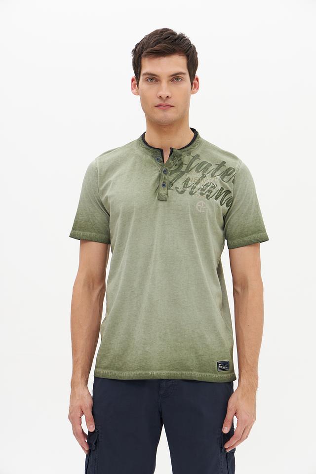Мужская футболка Casa Moda хаки цвета с оригинальным принтом и воротником-стойкой. Изготовлена из 100% хлопка, обеспечивающего комфорт и воздухопроницаемость. Состав: хлопок 100%