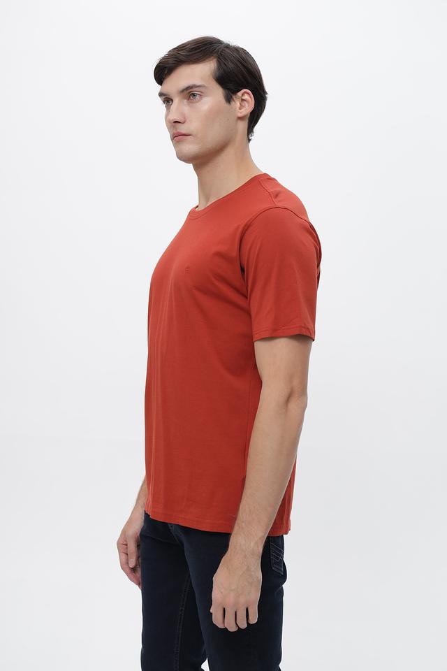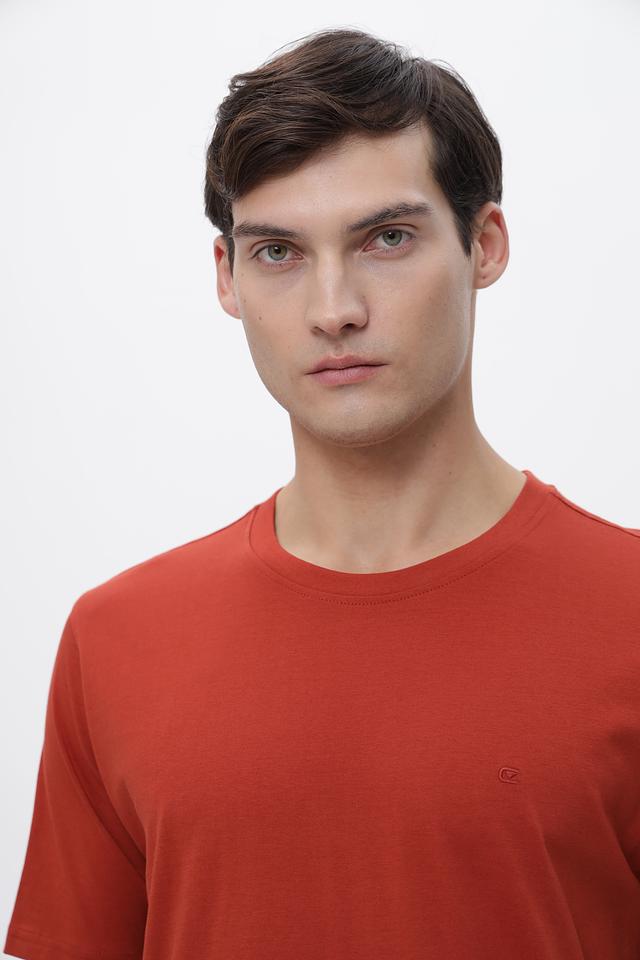 Футболка имеет классический крой, который подходит для любого типа фигуры. Округлый вырез горловины и короткие рукава делают ее идеальной для теплой погоды. Терракотовый цвет придает образу стильный и современный вид.